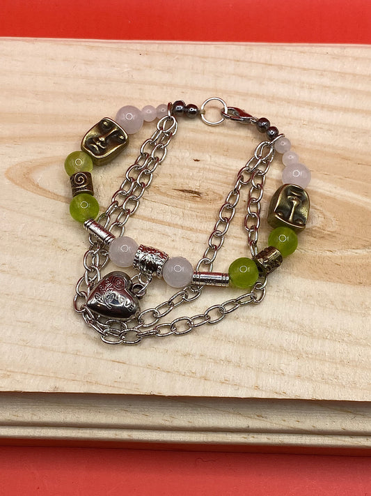 Sold outWhite x Green Double Chained Heart