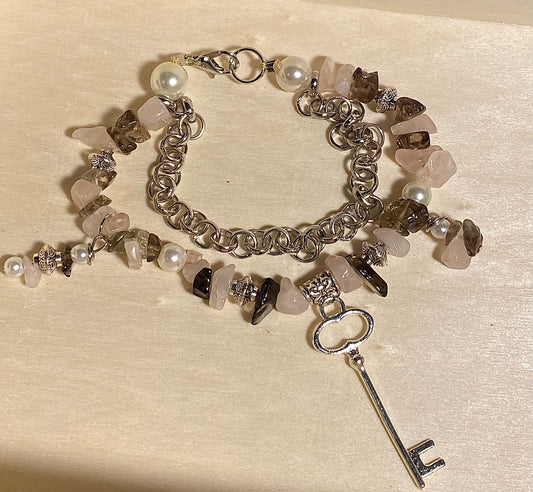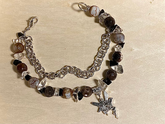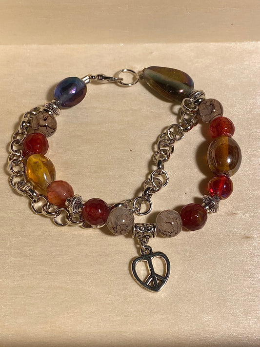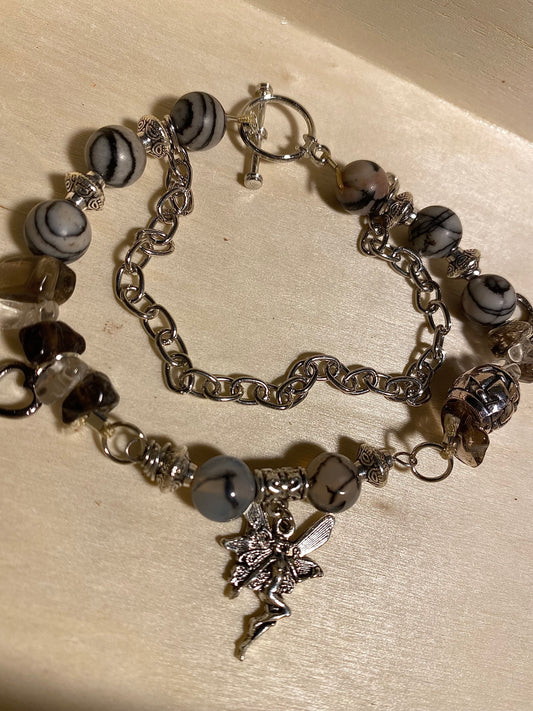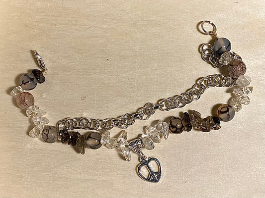 Peace Heart Black& Clear Quartz Bracelet