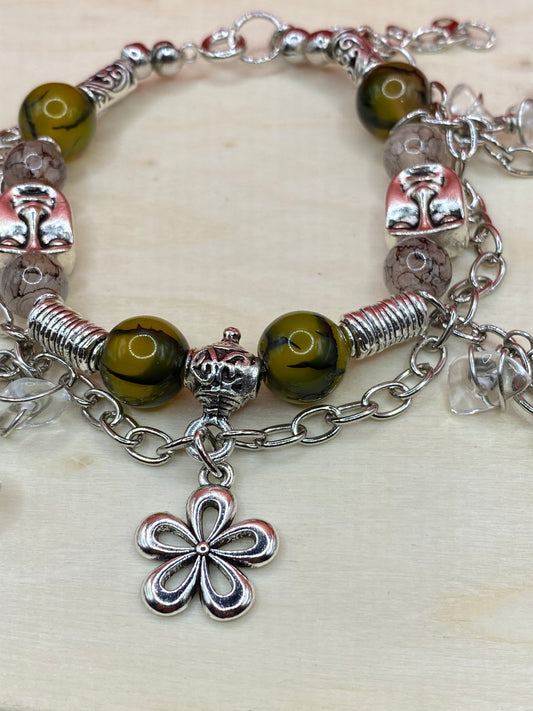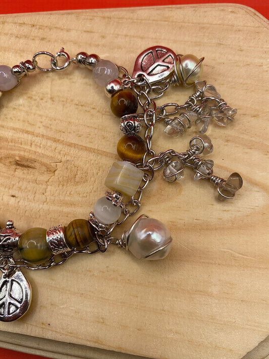 Sold outSilver Tiger Eye & Red Beads