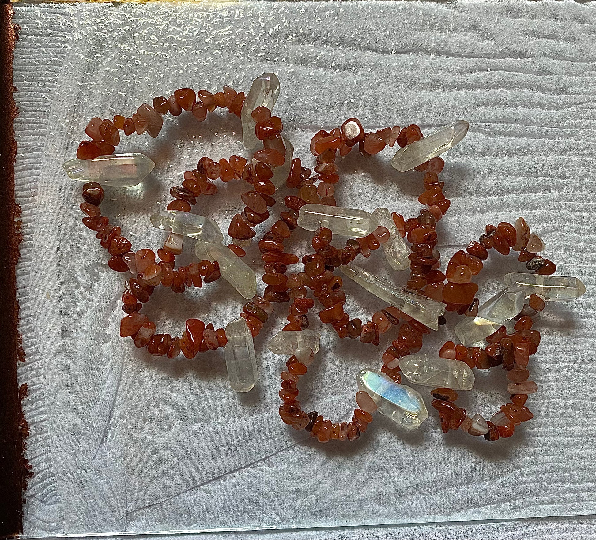 Carnelian Gemstone with crystals , these range from 7.5 - 8inches and are made with stretch cord for flexibility 💗 purchase comes with 1 braceletÂ