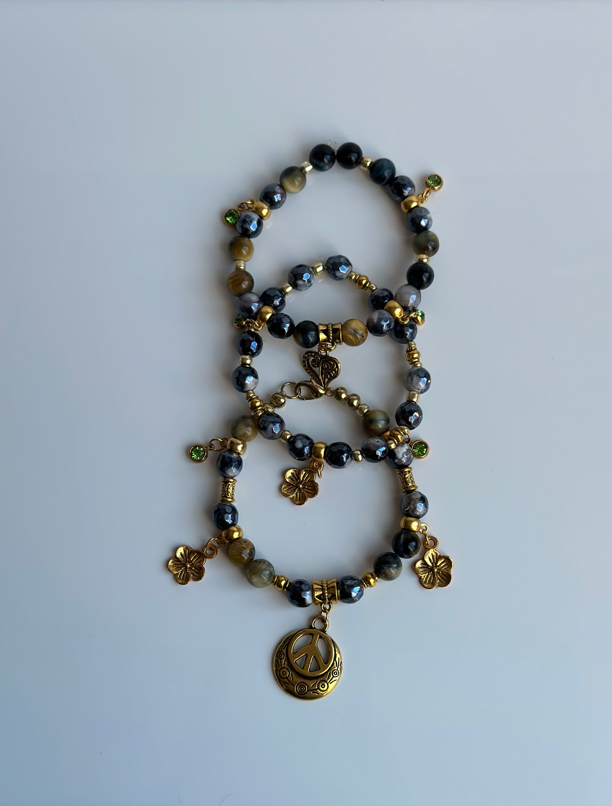 ! If you’d like an extension chain for longer length on the clasp bracelet , please leave a note request at checkout !! The second & third bracelet that comes with the set is stretch cord and does not have the option for adding an extension chain.